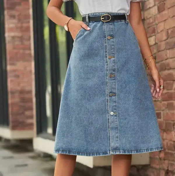 All-matching Slimming Denim Washed Breasted Skirt Women