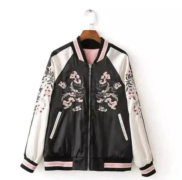 Blouson bombardier à fleurs brodées avec fermeture à glissière