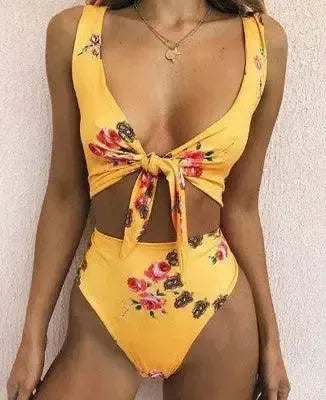 Bikini fendu Maillot de bain Cherry imprimé Maillot de bain dentelle