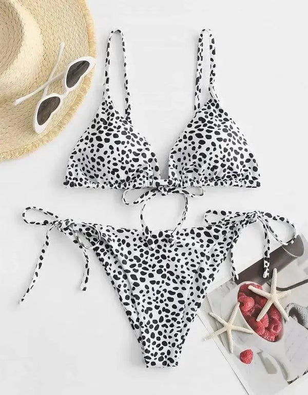 Bikini fendu Maillot de bain double face imprimé léopard et peau de serpent