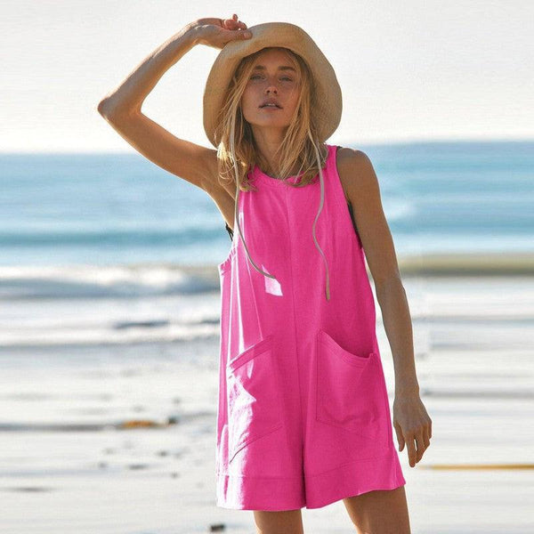 Combinaison Ample de Couleur Unie avec Poches Mode Eté Rose / L
