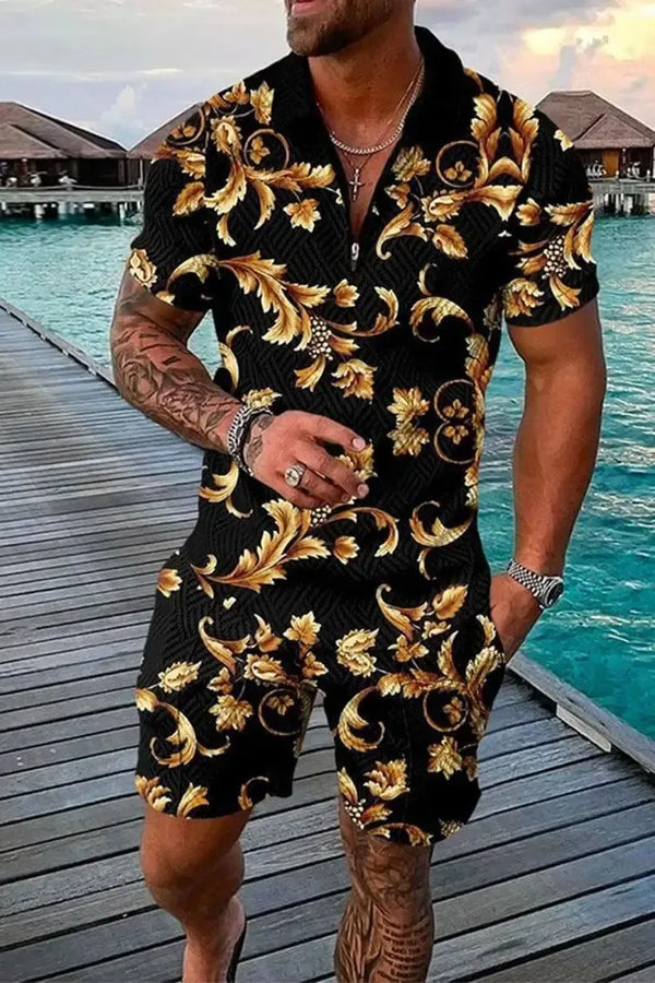 Costume deux pièces à la mode masculine avec revers imprimé et fermeture à glissière