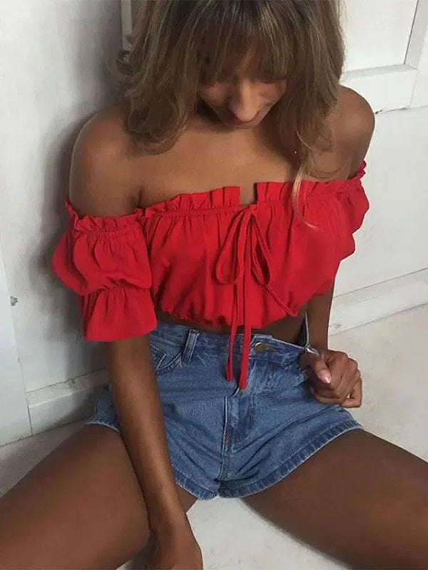Hauts courts pour femmes, manches lanternes, sans bretelles, été