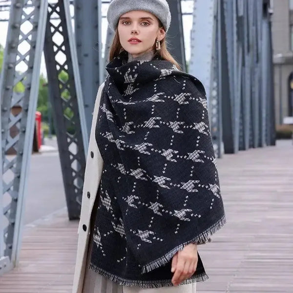 Description du produit : Echarpe chaude imprimée pied-de-poule pour femmes