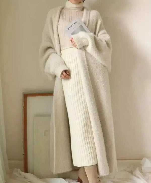Cardigan long en tricot pour femmes avec robe à col roulé