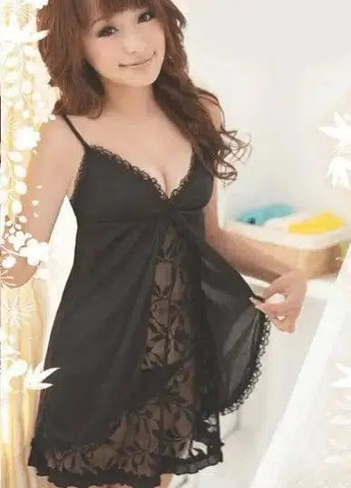 lingerie noir bretelles dentelle faux deux pyjamas