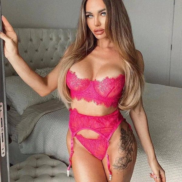 Lingerie féminine brodée en dentelle avec perles Trois