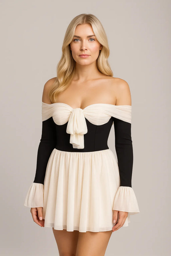 Description du produit : Robe de couleur à épaules dénudées pour femmes