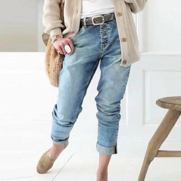 Jeans Jeans Femmes Mode perlé Jeans Breasted Straight