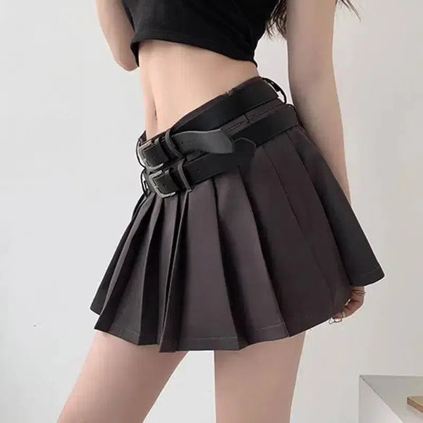- Type : Jupe courte Design : Double ceinture et détails plissés