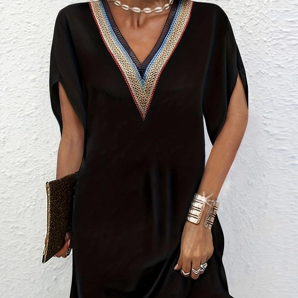 Ladies' Contrasting Lace V-Neck Dress – Casual, Lightweight & Breathable