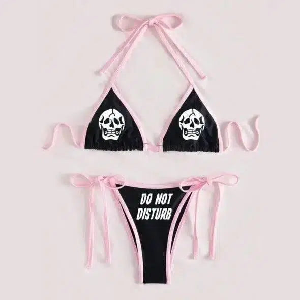Bikini imprimé tête de mort 3D et ciel étoilé Bikini fendu pour femmes