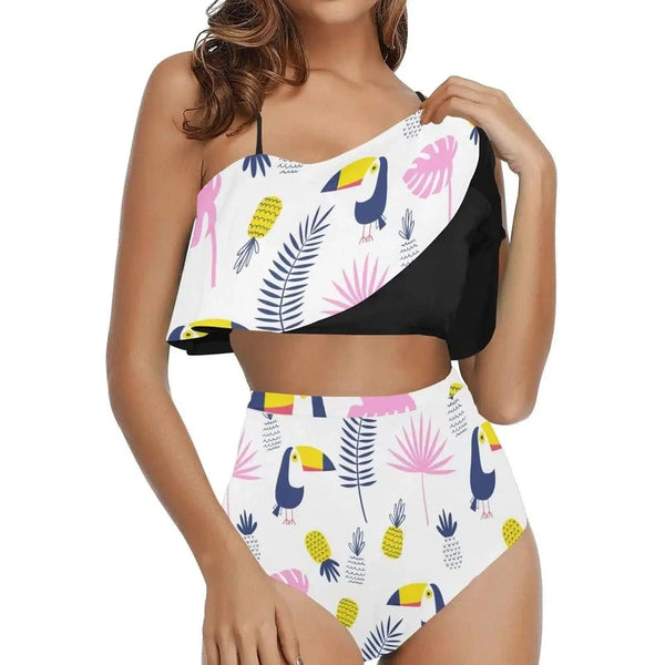 99DIY Femme Deux Pièces Taille Haute Bikini Volant à Volants