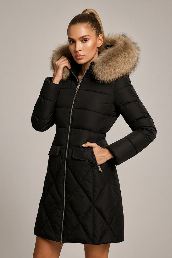- Type d'encolure/épaule: Capuche avec bordure en fausse fourrure