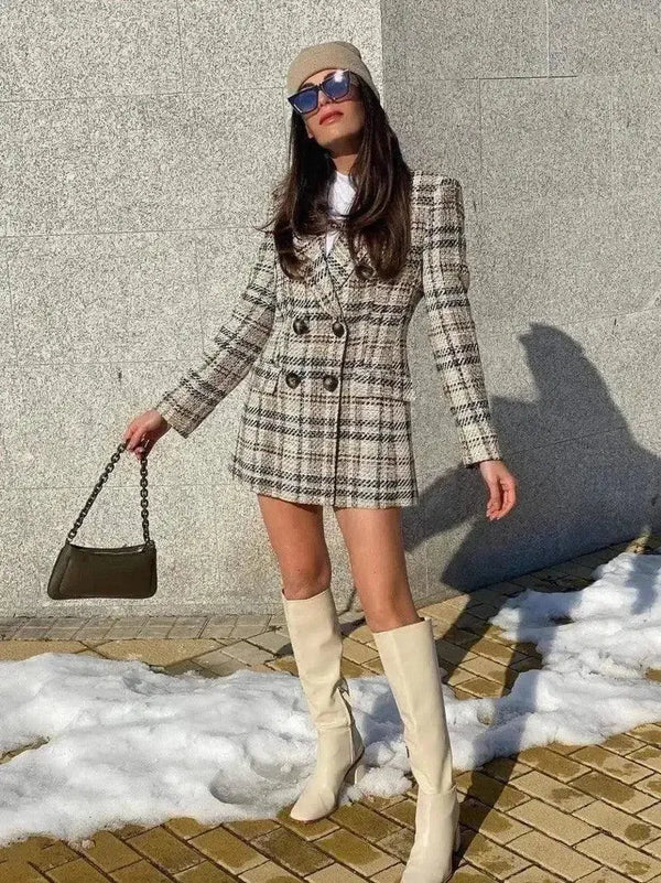 - Type de vêtement: Mini-robe style blazer à carreaux