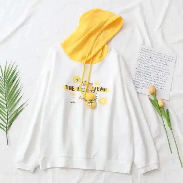Ce ravissant sweat à capuche allie confort et style fantaisiste, avec un doux mélange de coton et une capuche jaune vif qui attire l'attention. Son imprimé unique de personnage de dessin animé est parfait pour ceux qui aiment exprimer leur personnalité enjouée à travers leurs vêtements. Sa coupe décontractée et ses manches longues en font un excellent choix pour la vie de tous les jours, tandis que les poignets et l'ourlet côtelés ajoutent une touche de style classique au sweat à capuche. Facile à entretenir et polyvalent