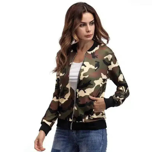 Veste zippée décontractée à imprimé camouflage pour femmes