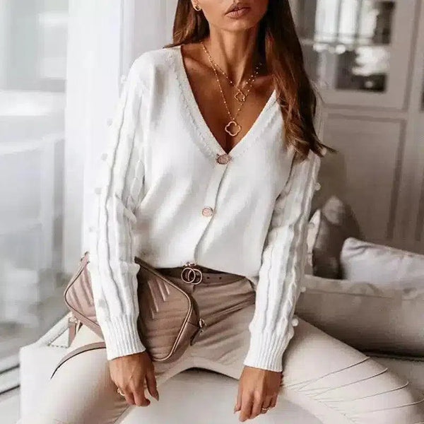 Pull en tricot à col en V pour femmes, avec détails de boutons