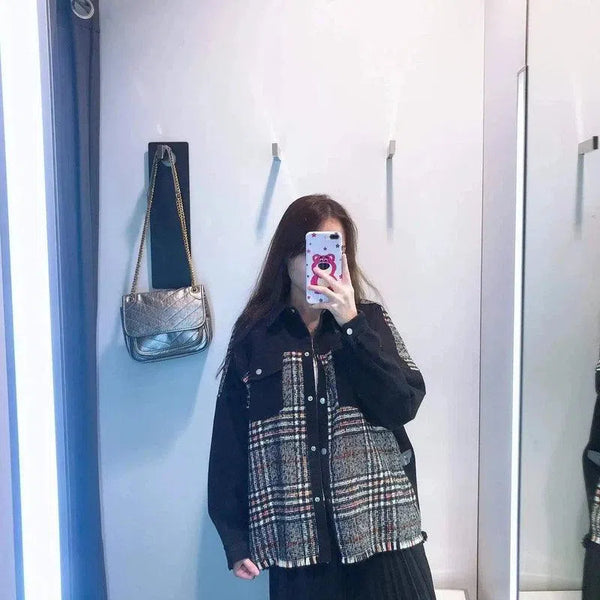 Texture et matière luxueuses : Fabriquée à partir d'un mélange de haute qualité, cette veste offre une sensation de confort et de douceur. La combinaison d'un tissu noir uni avec des panneaux de type tweed ajoute une touche de sophistication et de texture au design.