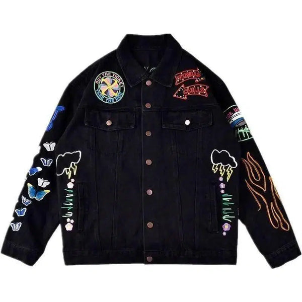 Caractéristiques de conception:Des patchs et des motifs brodés vibrants sur les manches
