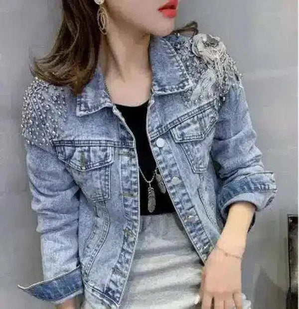 - Un style classique avec une touche : Avec sa coupe en denim intemporelle, cette veste présente une touche contemporaine grâce à des ornements uniques qui la distinguent des tenues en denim standard.
