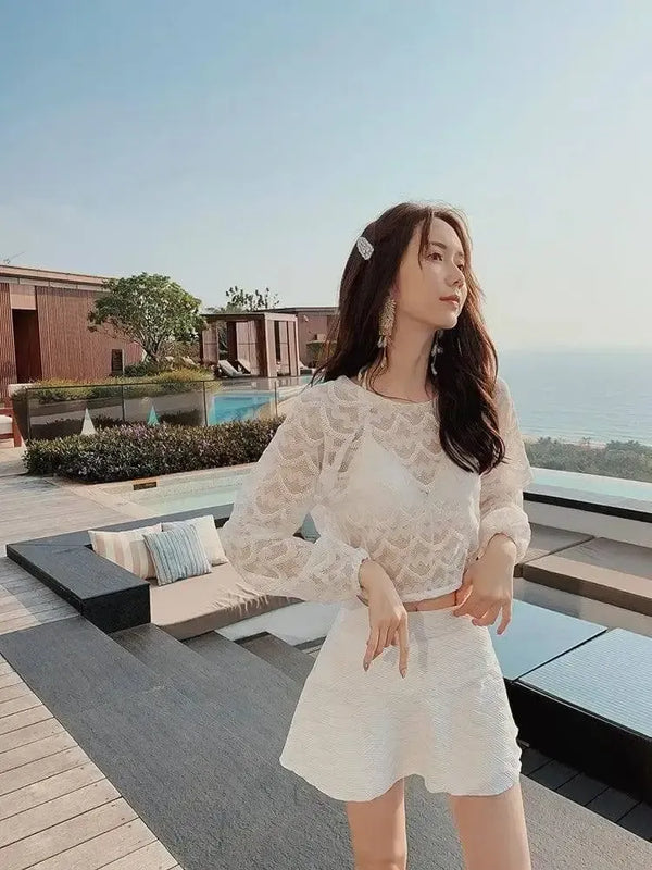 Description du produit : Maillot de bain trois pièces en dentelle pour femme