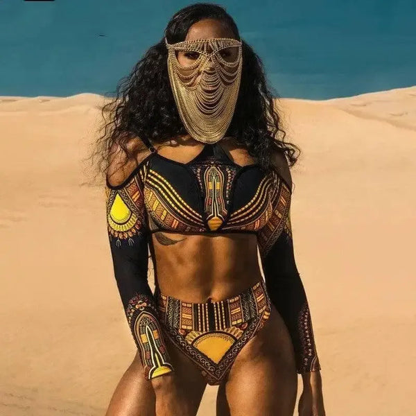 Bikini deux pièces à manches longues imprimé taille haute pour femmes