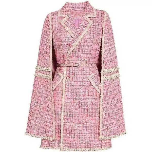 Womens Tweed Belted Coat with Fringe Detail (Manteau en tweed avec ceinture et franges)