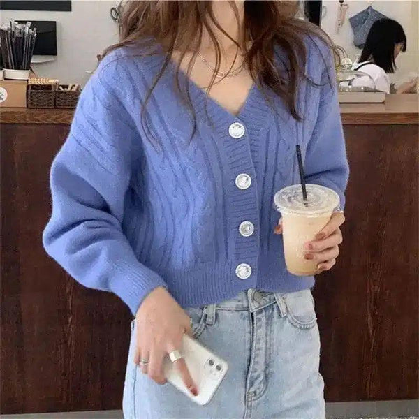 Pull cardigan en tricot torsadé à col en V pour femmes