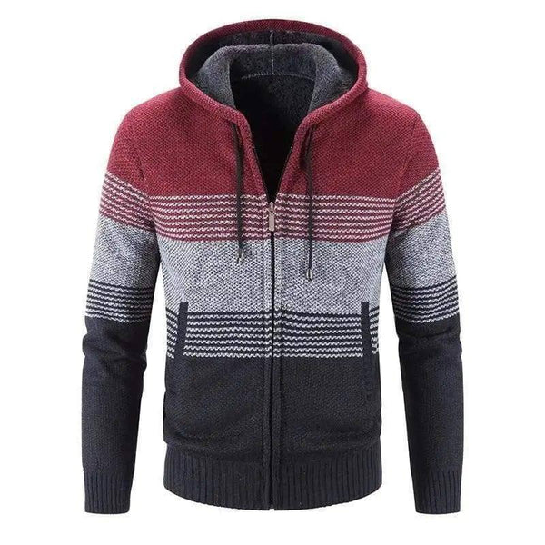 Manteau à rayures à capuche Cardigan Homme Laine épais avec fermeture à glissière