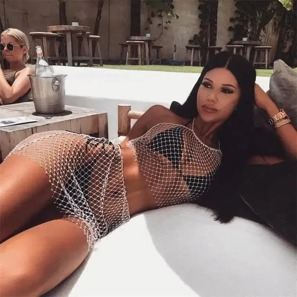 Description du produit : Maillot de bain brillant à diamant chaud Filet de pêche tissé à la main