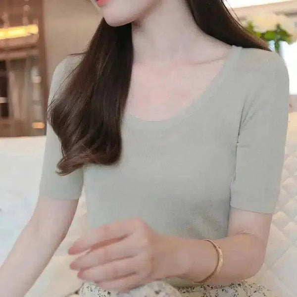 Top en tricot à manches courtes pour femmes