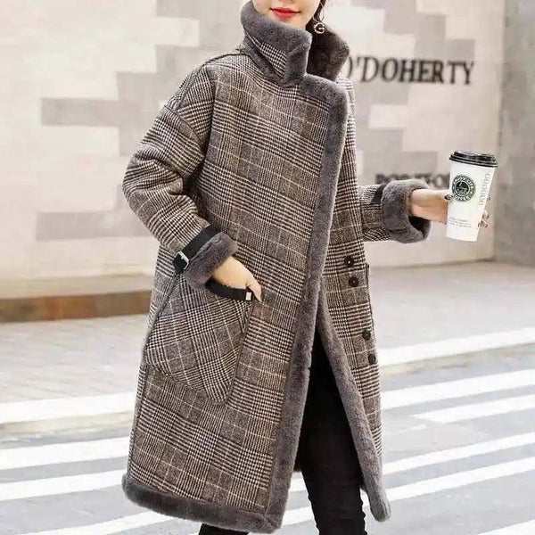 Manteau de laine mi-long en velours épais à tempérament coréen plus