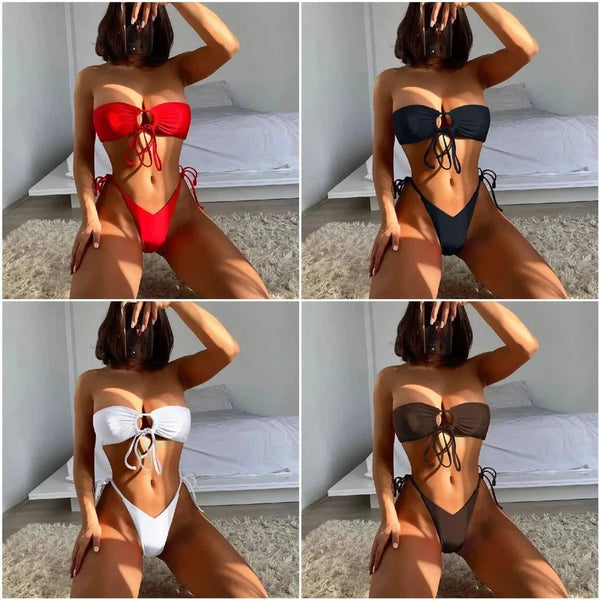 Maillot de bain fendu pour dames Bikini noué réglable