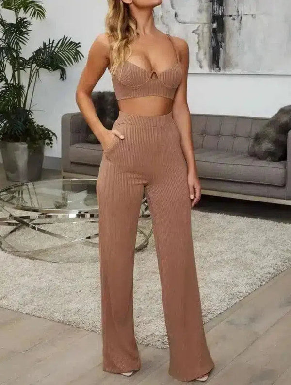 Ensemble licou et pantalon en tricot côtelé pour femmes