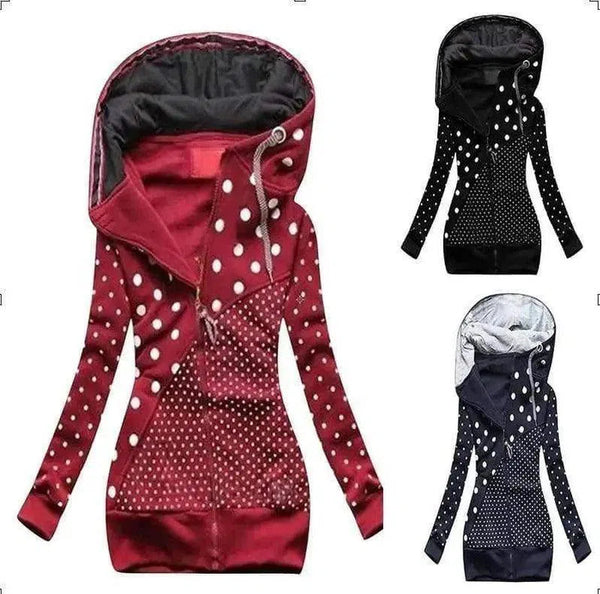 - Chic Polka Dot Hoodie : Adoptez un look à la fois ludique et élégant avec ce sweat à capuche à pois, parfait pour ajouter un motif à votre garde-robe.