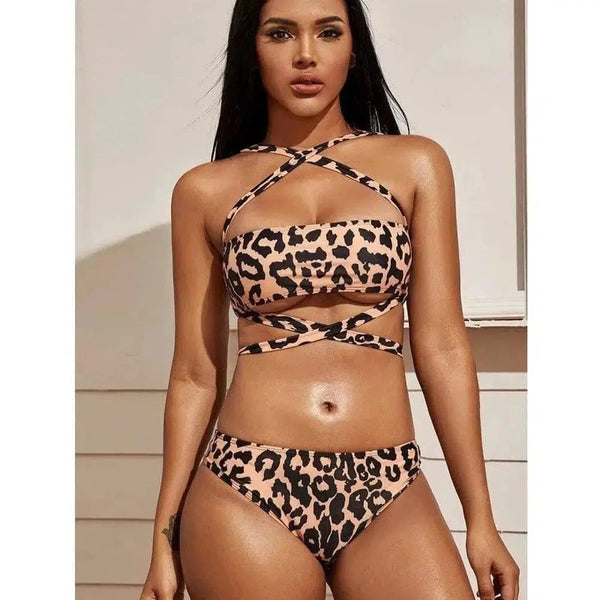 Maillot de bain à bretelles imprimé léopard