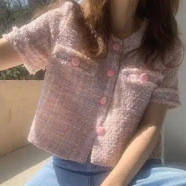 Détails de conception: Deux poches sur la poitrine et des boutons roses ludiques