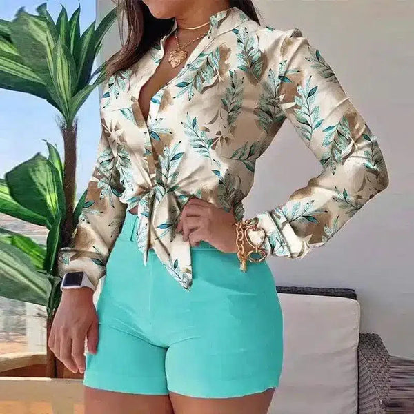 Ensemble chemisier à nouettes à fleurs et short ajusté