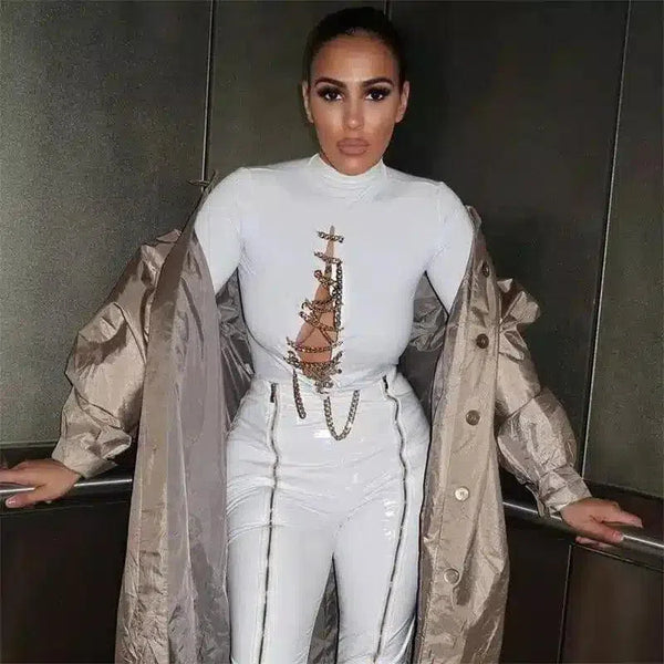 Top à col roulé blanc avec détails en chaîne - Bold Fashion Look