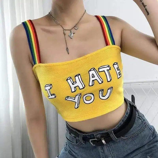 - Mise en plis Caractéristique du design: Texte graphique en gras "I HATE YOU" dans des couleurs contrastées
