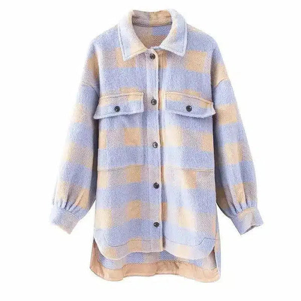 - Motif à carreaux chic : Démarquez-vous avec style grâce au motif à carreaux bleu et beige de la veste, un motif intemporel qui ajoute une touche de charme classique à n'importe quelle tenue.