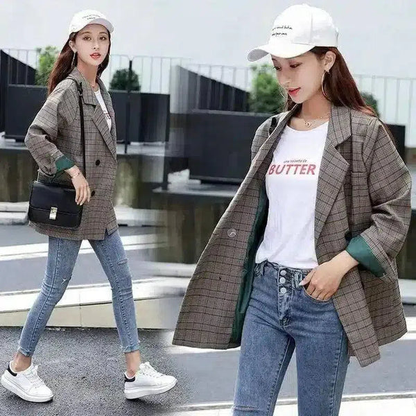 Ensemble décontracté de blazer à carreaux et de jeans pour femmes