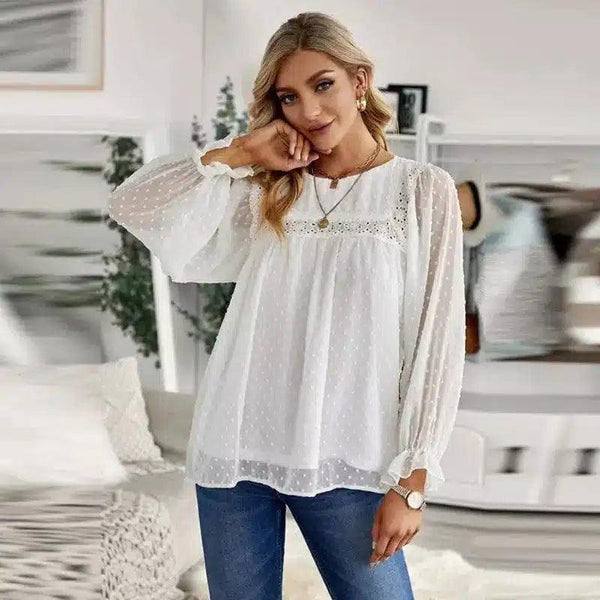 Chemisier transparent à manches longues avec détails en dentelle pour femmes