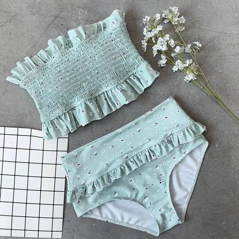 bikini froissé maillot de bain taille haute fendu