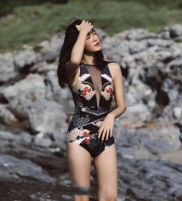 - Design:Elégant maillot de bain une pièce inspiré des motifs culturels de l'Asie du Sud-Est.