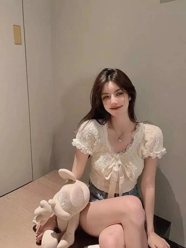 - La longueur des manches:Manches courtes avec volants Longueur des manches: Manches courtes avec volants