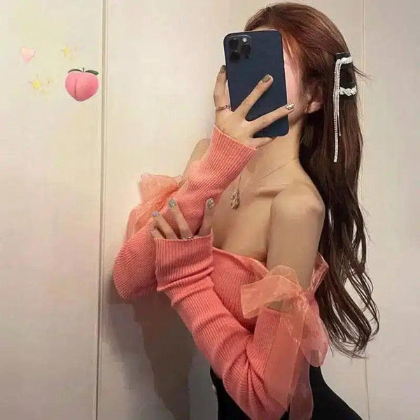 Pull en tricot à épaulettes avec manches en tulle pour femmes