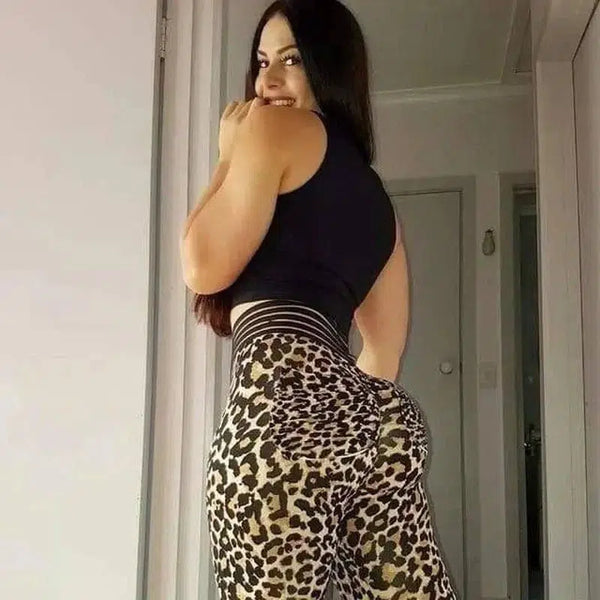 - L'encolure est ronde. Design:Leggings à l'imprimé léopard audacieux avec une ceinture élégante .