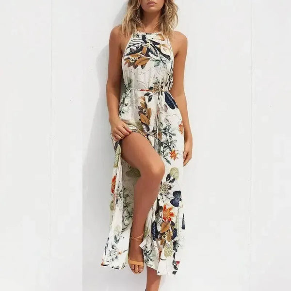 Robe de plage longue en coton imprimé, avec écharpe, européenne et américaine